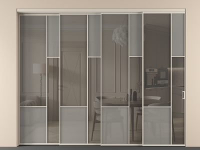 Перегородка Мозаик внутри проёма 4 створки с синхронным механизмом