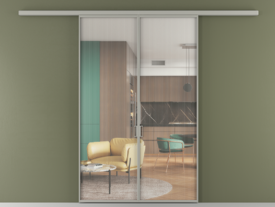 Во всех алюминиевых перегородках, независимо от типа установки, используется компланарный раздвижной механизм, благодаря которому декоративная крышка и полотно находятся в одной плоскости.