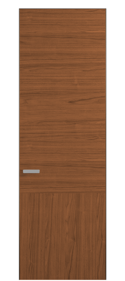 Полотно Rift в скрытом алюминиевом коробе становится полноценным элементом декора. В коллекции представлено 9 моделей дверей в высоте до 3 метров. Рисунок раскладки шпона варьируется от простого до сложного. «Рубашка» для каждого полотна подбирается вручную по цвету, текстуре и фактуре.