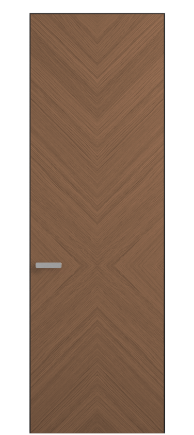 Полотно Rift в скрытом алюминиевом коробе становится полноценным элементом декора. В коллекции представлено 9 моделей дверей в высоте до 3 метров. Рисунок раскладки шпона варьируется от простого до сложного. «Рубашка» для каждого полотна подбирается вручную по цвету, текстуре и фактуре.