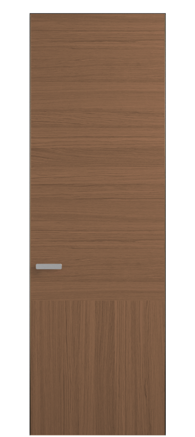 Полотно Rift в скрытом алюминиевом коробе становится полноценным элементом декора. В коллекции представлено 9 моделей дверей в высоте до 3 метров. Рисунок раскладки шпона варьируется от простого до сложного. «Рубашка» для каждого полотна подбирается вручную по цвету, текстуре и фактуре.
