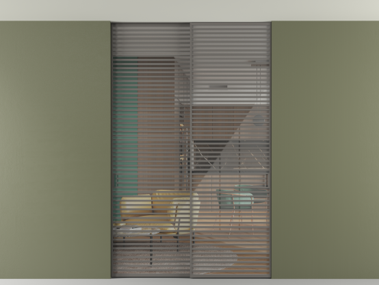 Во всех алюминиевых перегородках, независимо от типа установки, используется компланарный раздвижной механизм, благодаря которому декоративная крышка и полотно находятся в одной плоскости.