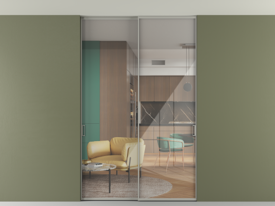 Алюминиевые перегородки имеют единый профиль с алюминиевыми дверьми и легко сочетаются в одном пространстве, не перегружая его. Также их можно комбинировать в интерьере с полотнами из нашего стандартного ассортимента. Помимо этого, система алюминиевых перегородок и дверей координируется со стеновыми панелями Волховец.