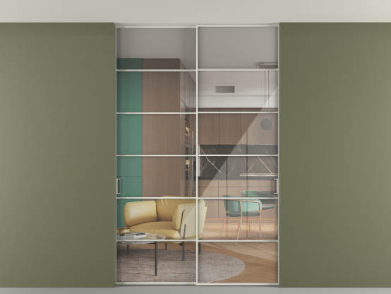 Алюминиевые перегородки имеют единый профиль с алюминиевыми дверьми и легко сочетаются в одном пространстве, не перегружая его. Также их можно комбинировать в интерьере с полотнами из нашего стандартного ассортимента. Помимо этого, система алюминиевых перегородок и дверей координируется со стеновыми панелями Волховец.