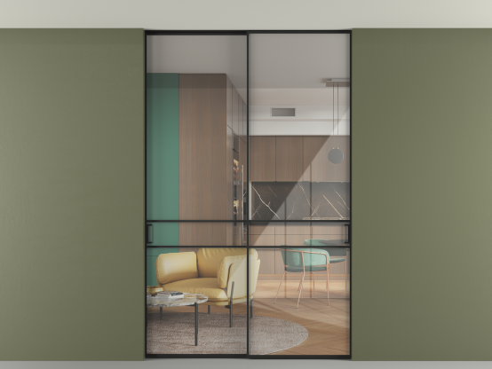 Алюминиевые перегородки имеют единый профиль с алюминиевыми дверьми и легко сочетаются в одном пространстве, не перегружая его. Также их можно комбинировать в интерьере с полотнами из нашего стандартного ассортимента. Помимо этого, система алюминиевых перегородок и дверей координируется со стеновыми панелями Волховец.