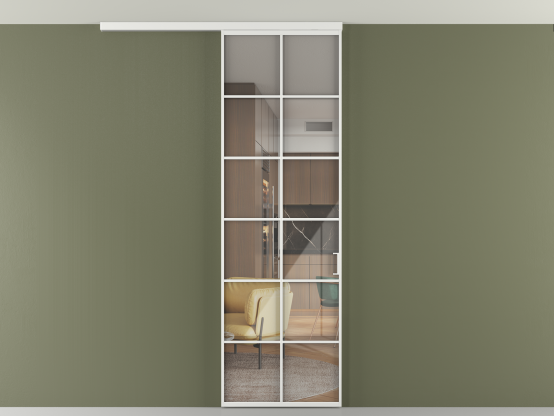 Во всех алюминиевых перегородках, независимо от типа установки, используется компланарный раздвижной механизм, благодаря которому декоративная крышка и полотно находятся в одной плоскости.