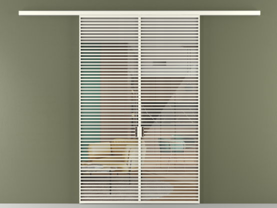 Дополнительно на раздвижную двустворчатую перегородку вдоль стены и четырёхстворчатую перегородку внутри проёма с двумя неподвижным полотнами можно установить механизм синхронного открывания — при открывании одной створки, вторая открывается автоматически.