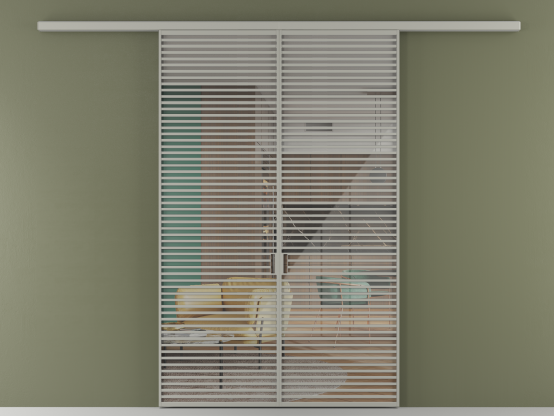 Во всех алюминиевых перегородках, независимо от типа установки, используется компланарный раздвижной механизм, благодаря которому декоративная крышка и полотно находятся в одной плоскости.