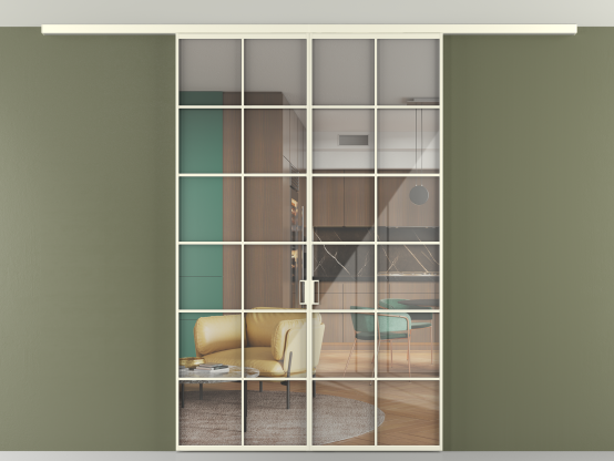 Алюминиевые перегородки имеют единый профиль с алюминиевыми дверьми и легко сочетаются в одном пространстве, не перегружая его. Также их можно комбинировать в интерьере с полотнами из нашего стандартного ассортимента. Помимо этого, система алюминиевых перегородок и дверей координируется со стеновыми панелями Волховец.