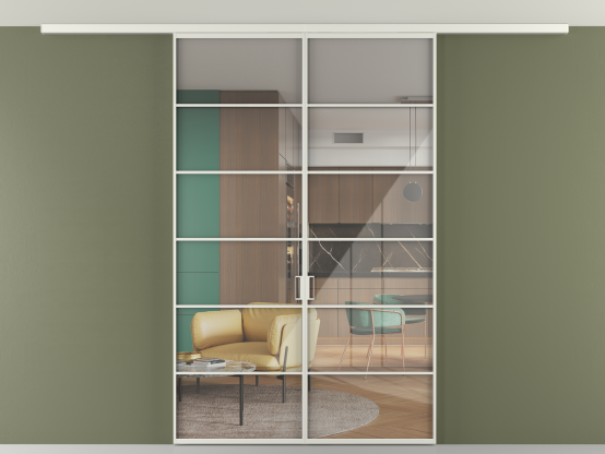 Алюминиевые перегородки имеют единый профиль с алюминиевыми дверьми и легко сочетаются в одном пространстве, не перегружая его. Также их можно комбинировать в интерьере с полотнами из нашего стандартного ассортимента. Помимо этого, система алюминиевых перегородок и дверей координируется со стеновыми панелями Волховец.