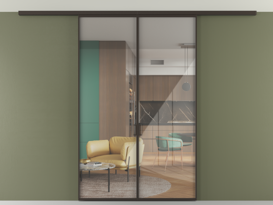 Алюминиевые перегородки имеют единый профиль с алюминиевыми дверьми и легко сочетаются в одном пространстве, не перегружая его. Также их можно комбинировать в интерьере с полотнами из нашего стандартного ассортимента. Помимо этого, система алюминиевых перегородок и дверей координируется со стеновыми панелями Волховец.