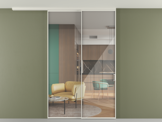 Во всех алюминиевых перегородках, независимо от типа установки, используется компланарный раздвижной механизм, благодаря которому декоративная крышка и полотно находятся в одной плоскости.