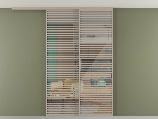 Дополнительно на раздвижную двустворчатую перегородку вдоль стены и четырёхстворчатую перегородку внутри проёма с двумя неподвижным полотнами можно установить механизм синхронного открывания — при открывании одной створки, вторая открывается автоматически.