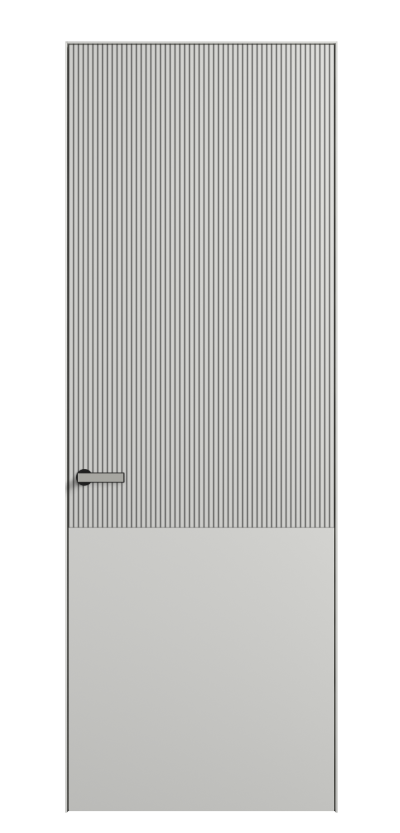 Это полотна с рельефной фрезеровкой. Этот прием делает интерьер объемным, тактильным, вносит интересную текстуру и создает современный образ. Волнистый рельеф может быть выполнен по ламелям из массива дуба в древесных матовых отделках, либо исполнен по натуральному и экологически безопасному материалу — ХДФ, покрытому гладкой эмалью актуальных оттенков.