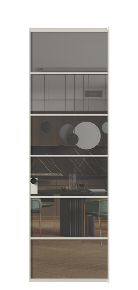 Минималистичный профиль повторяет форму профиля алюминиевых раздвижных перегородок Формато, что позволяет легко сочетать оба решения в одном пространстве.