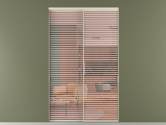 Во всех алюминиевых перегородках, независимо от типа установки, используется компланарный раздвижной механизм, благодаря которому декоративная крышка и полотно находятся в одной плоскости.