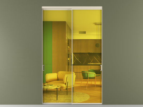 Мы предлагаем девять вариантов декоративного стекла: от кристально-прозрачного до матовых цветных, а также стёкла с эффектом Stopsol, когда лицевая сторона стекла зеркальная, но при включенном освещении за стеклом — становится прозрачной.