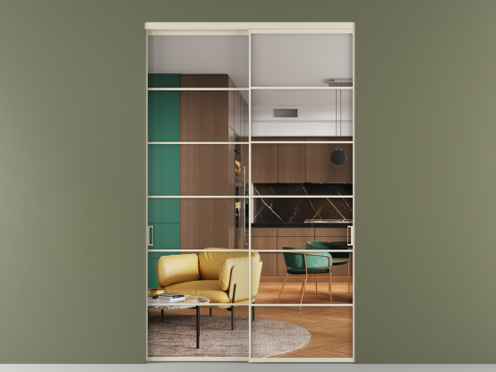 Алюминиевые перегородки имеют единый профиль с алюминиевыми дверьми и легко сочетаются в одном пространстве, не перегружая его. Также их можно комбинировать в интерьере с полотнами из нашего стандартного ассортимента. Помимо этого, система алюминиевых перегородок и дверей координируется со стеновыми панелями Волховец.