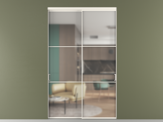 Во всех алюминиевых перегородках, независимо от типа установки, используется компланарный раздвижной механизм, благодаря которому декоративная крышка и полотно находятся в одной плоскости.
