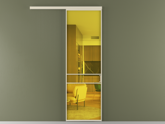 Мы предлагаем девять вариантов декоративного стекла: от кристально-прозрачного до матовых цветных, а также стёкла с эффектом Stopsol, когда лицевая сторона стекла зеркальная, но при включенном освещении за стеклом — становится прозрачной.