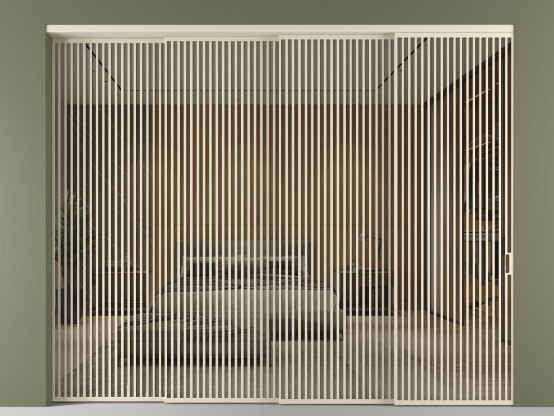 Во всех алюминиевых перегородках, независимо от типа установки, используется компланарный раздвижной механизм, благодаря которому декоративная крышка и полотно находятся в одной плоскости.