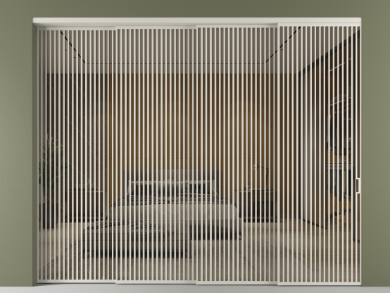 Во всех алюминиевых перегородках, независимо от типа установки, используется компланарный раздвижной механизм, благодаря которому декоративная крышка и полотно находятся в одной плоскости.