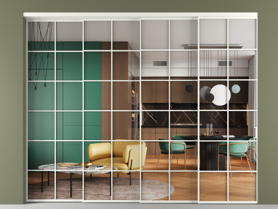 Перегородка Формато внутри проёма 4 створки с синхронным механизмом