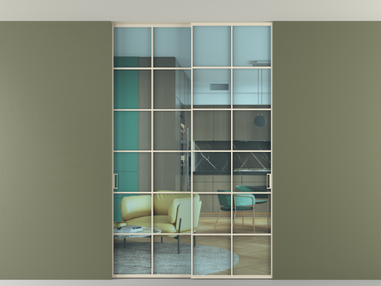 Алюминиевые перегородки имеют единый профиль с алюминиевыми дверьми и легко сочетаются в одном пространстве, не перегружая его. Также их можно комбинировать в интерьере с полотнами из нашего стандартного ассортимента. Помимо этого, система алюминиевых перегородок и дверей координируется со стеновыми панелями Волховец.