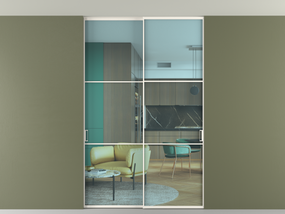 Перегородка Формато внутри проёма скрытое крепление в потолок 2 створки