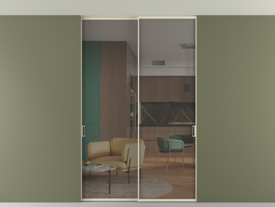 Алюминиевые перегородки имеют единый профиль с алюминиевыми дверьми и легко сочетаются в одном пространстве, не перегружая его. Также их можно комбинировать в интерьере с полотнами из нашего стандартного ассортимента. Помимо этого, система алюминиевых перегородок и дверей координируется со стеновыми панелями Волховец.