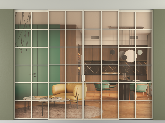 Алюминиевые перегородки Formato — это стильное и функциональное решение для современных интерьеров, предназначенное для разделения и зонирования пространства внутри одного помещения. Перегородки изготавливаются под индивидуальные размеры с шагом в 1 мм, что даёт возможность подобрать оптимальное соотношение размеров и количества створок, в том числе и для нестандартных проёмов.