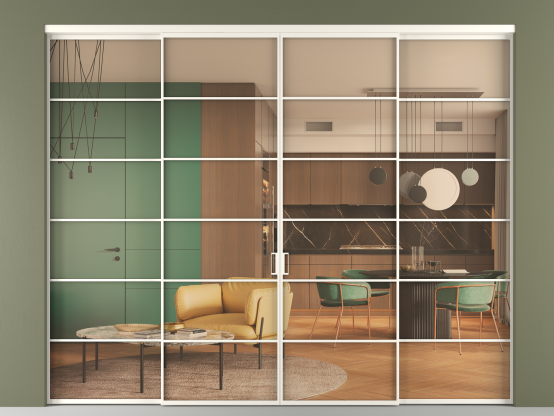 Перегородки FORMATO сочетаются с алюминиевыми дверьми FORMATO, стеновыми панелями Волховец и коллекциями межкомнатных дверей PLANUM PRO, VELVET.