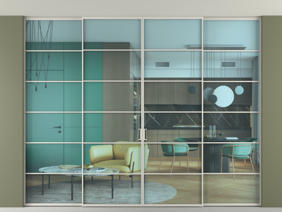 Перегородка Formato внутри проёма скрытое крепление в потолок 4 створки
