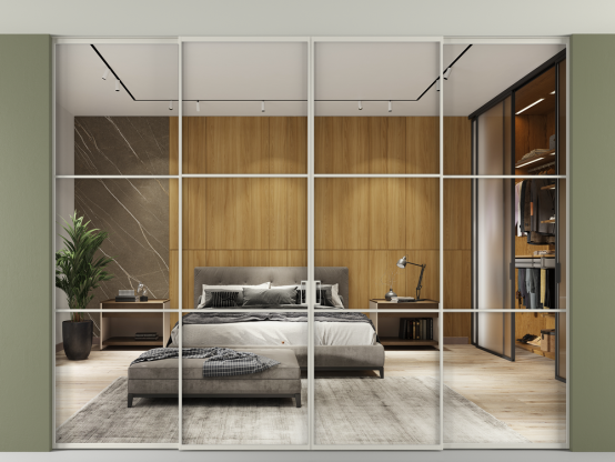 Алюминиевые перегородки имеют единый профиль с алюминиевыми дверьми и легко сочетаются в одном пространстве, не перегружая его. Также их можно комбинировать в интерьере с полотнами из нашего стандартного ассортимента. Помимо этого, система алюминиевых перегородок и дверей координируется со стеновыми панелями Волховец.