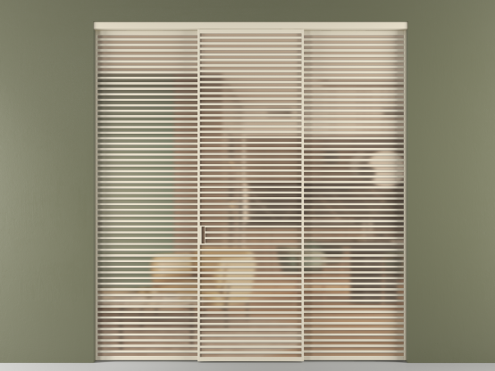 Во всех алюминиевых перегородках, независимо от типа установки, используется компланарный раздвижной механизм, благодаря которому декоративная крышка и полотно находятся в одной плоскости.