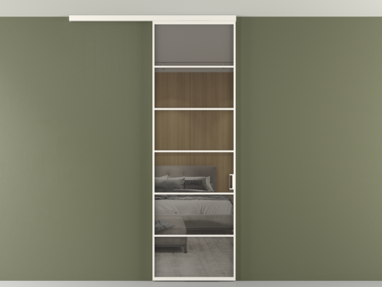 Во всех алюминиевых перегородках, независимо от типа установки, используется компланарный раздвижной механизм, благодаря которому декоративная крышка и полотно находятся в одной плоскости.