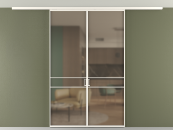 Во всех алюминиевых перегородках, независимо от типа установки, используется компланарный раздвижной механизм, благодаря которому декоративная крышка и полотно находятся в одной плоскости.