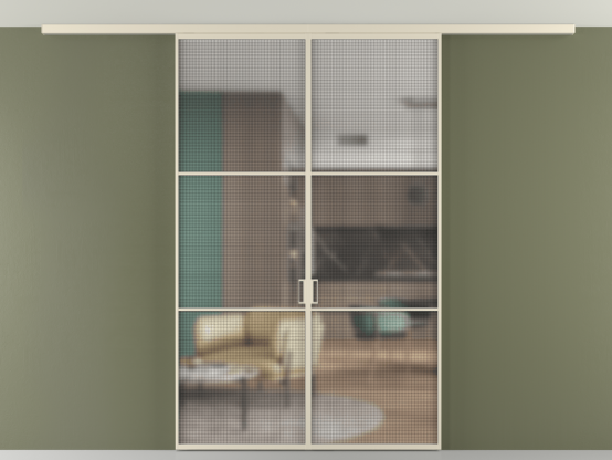 Во всех алюминиевых перегородках, независимо от типа установки, используется компланарный раздвижной механизм, благодаря которому декоративная крышка и полотно находятся в одной плоскости.