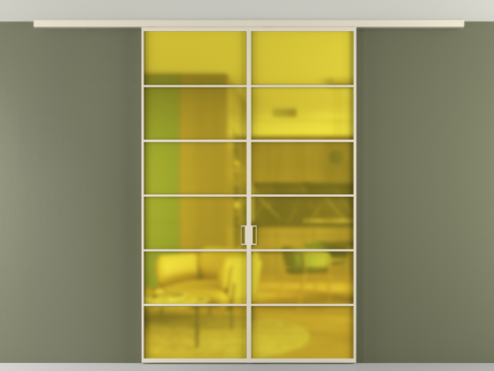 АЛПР 040.04. Алюминий бежево-серый Сатинированное жёлтое стекло, триплекс, 6мм