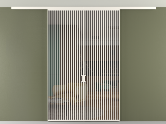 Во всех алюминиевых перегородках, независимо от типа установки, используется компланарный раздвижной механизм, благодаря которому декоративная крышка и полотно находятся в одной плоскости.