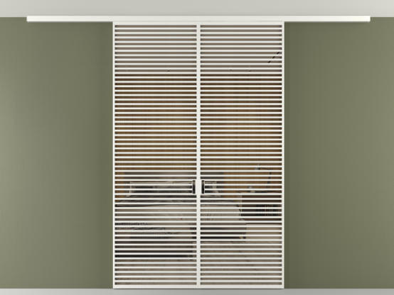 Во всех алюминиевых перегородках, независимо от типа установки, используется компланарный раздвижной механизм, благодаря которому декоративная крышка и полотно находятся в одной плоскости.