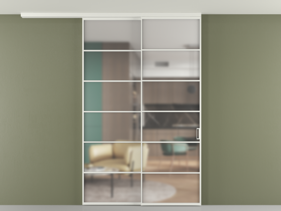 Во всех алюминиевых перегородках, независимо от типа установки, используется компланарный раздвижной механизм, благодаря которому декоративная крышка и полотно находятся в одной плоскости.