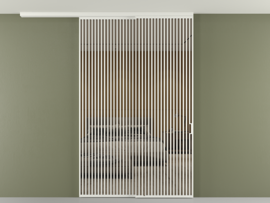 Перегородка Формато вдоль стены на потолок 2 створки с синхронным механизмом