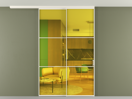 АЛПР 040.03. Алюминий пудровый белый Прозрачное жёлтое стекло, триплекс, 6мм
