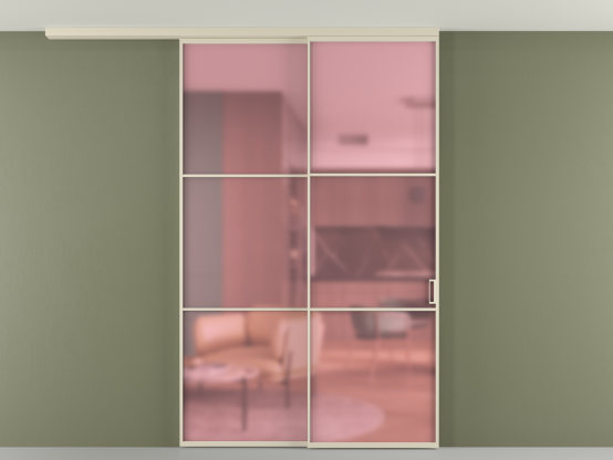 Дополнительно на раздвижную двустворчатую перегородку вдоль стены и четырёхстворчатую перегородку внутри проёма с двумя неподвижным полотнами можно установить механизм синхронного открывания — при открывании одной створки, вторая открывается автоматически.