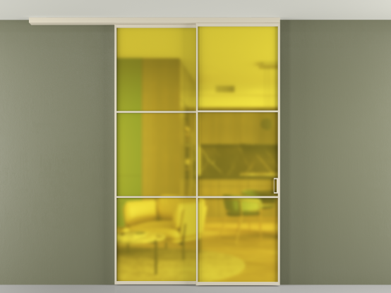 АЛПР 040.03. Алюминий бежево-серый Сатинированное жёлтое стекло, триплекс, 6мм