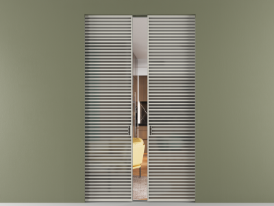 Дополнительно на раздвижную двустворчатую перегородку вдоль стены и четырёхстворчатую перегородку внутри проёма с двумя неподвижным полотнами можно установить механизм синхронного открывания — при открывании одной створки, вторая открывается автоматически.