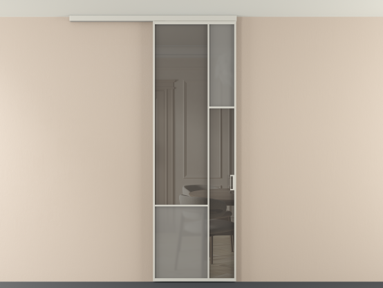 Во всех алюминиевых перегородках, независимо от типа установки, используется компланарный раздвижной механизм, благодаря которому декоративная крышка и полотно находятся в одной плоскости.