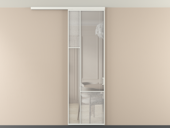 Во всех алюминиевых перегородках, независимо от типа установки, используется компланарный раздвижной механизм, благодаря которому декоративная крышка и полотно находятся в одной плоскости.