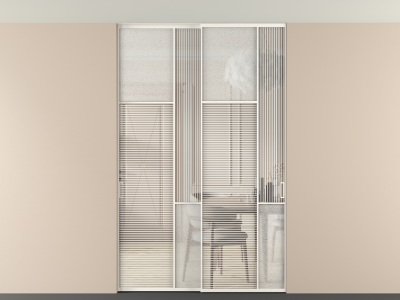 Во всех алюминиевых перегородках, независимо от типа установки, используется компланарный раздвижной механизм, благодаря которому декоративная крышка и полотно находятся в одной плоскости.